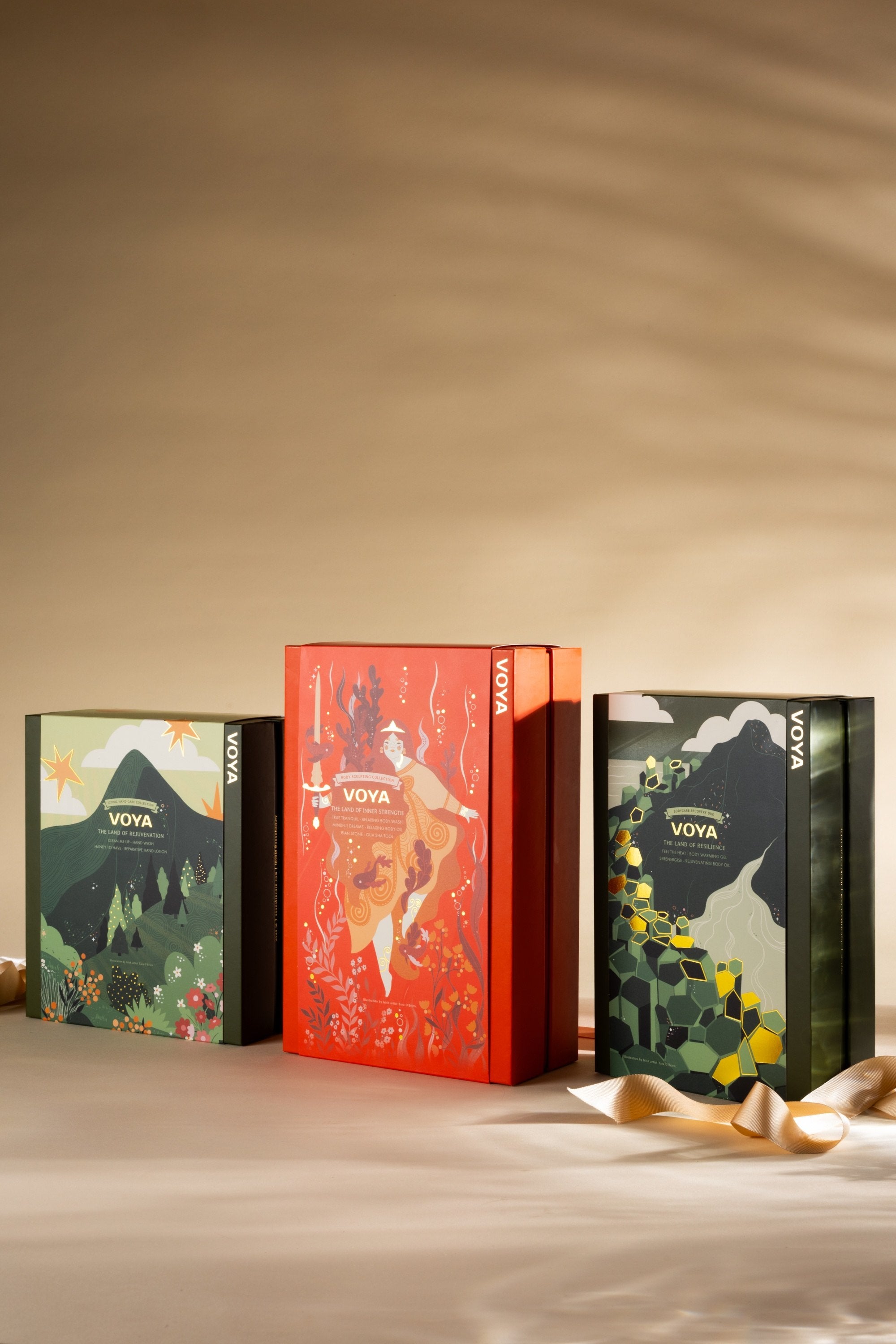 To bring the concept to life, VOYA collaborated with Irish illustrator Tara O’Brien, whose expressive and modern designs add depth, character, and cultural resonance to each gift set. Tara O’Brien is one of Ireland’s most dynamic contemporary illustrators, celebrated for her bold, feminine artwork and richly textured, modern aesthetic.